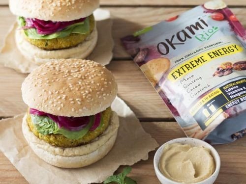 Pour assembler les burgers, étaler 2 cuillères à soupe de houmous sur chaque petit pain inférieur. Placez un Patty sur chacun d’eux et garnissez-les d’épinards et d’oignons au vinaigre. Recouvrez avec les autres petits pains.