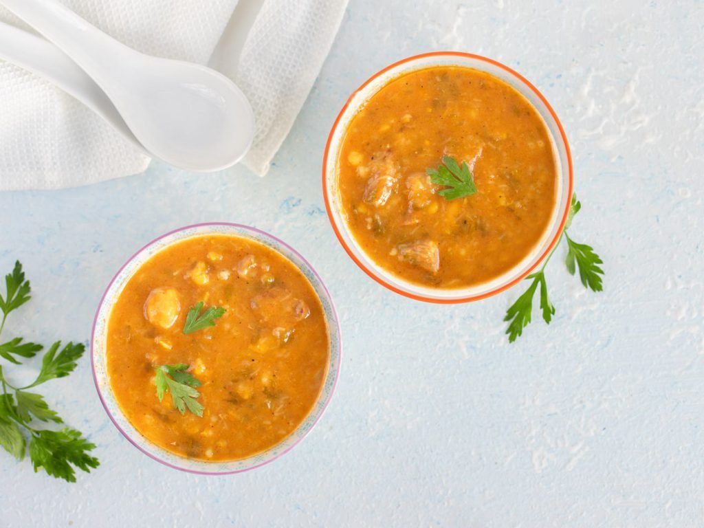 - Remuez constamment pendant quelques minutes. La soupe aura une texture veloutée, retirez du feu, puis ajoutez la coriandre et le jus de citron selon le goût.