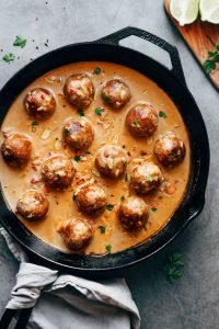 Des tendres croquettes de fonio servies dans une délicieuse sauce à la noix de coco et aux cacahuètes, aromatisée aux épices, au gingembre et à l’ail. Recette vegan et végétarienne
